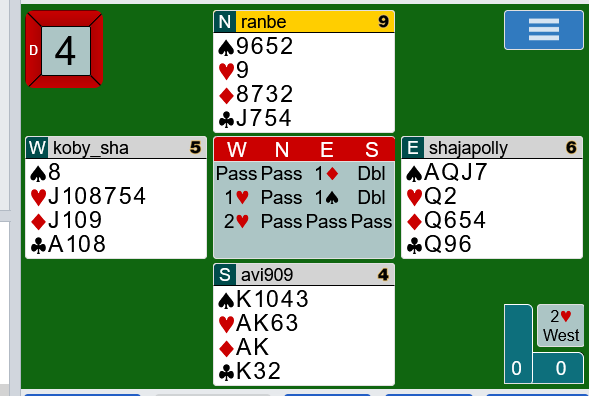 כמו ברוב ימי רביעי בערב, שיחקתי אתמול (9.6.21) באתר ה-BBO עם שותפי בתחרות קבוצות מתחלפות כאימון לליגה